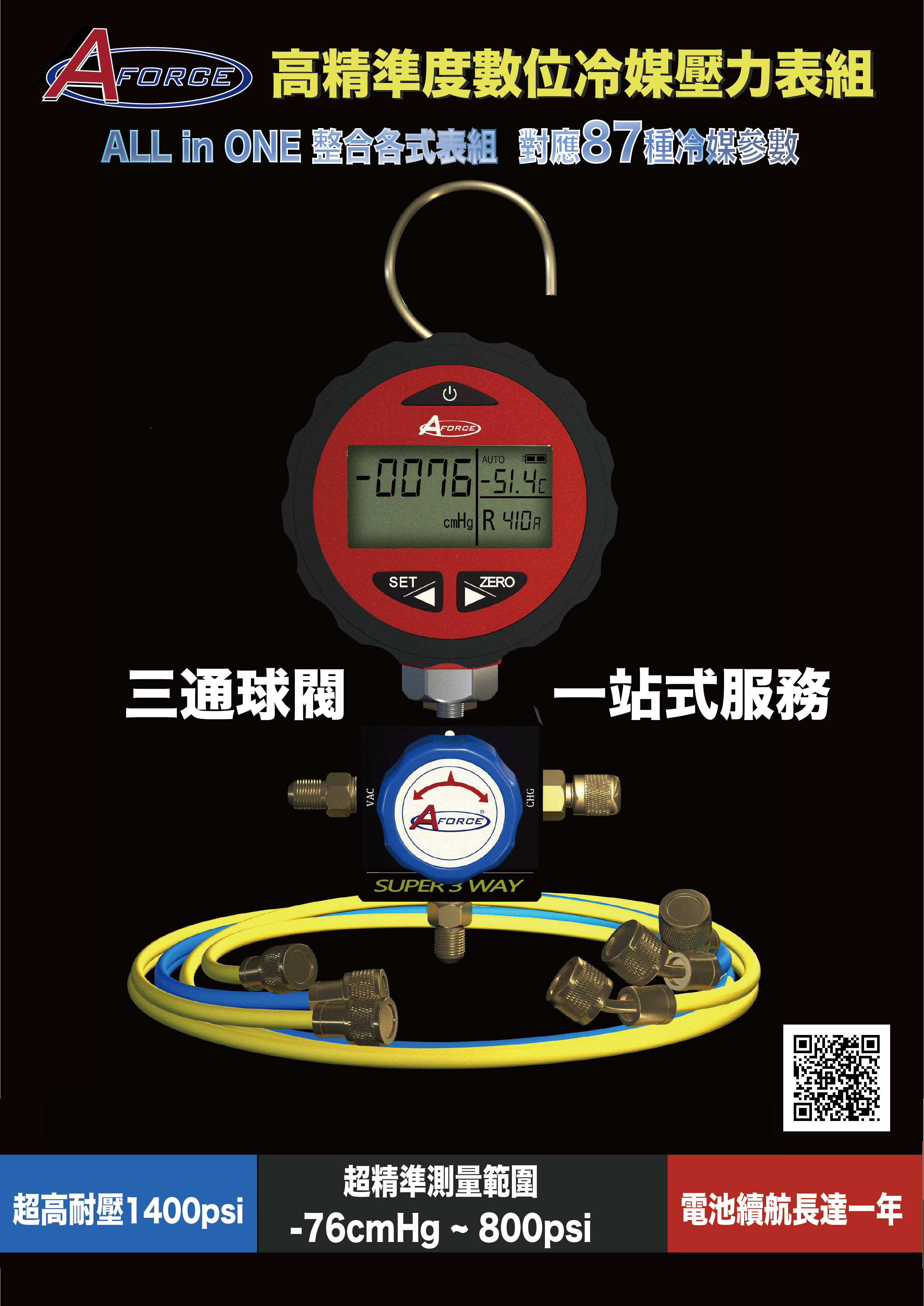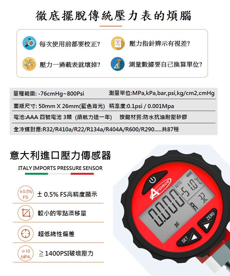 台灣AFORCE高精度數位冷媒壓力表