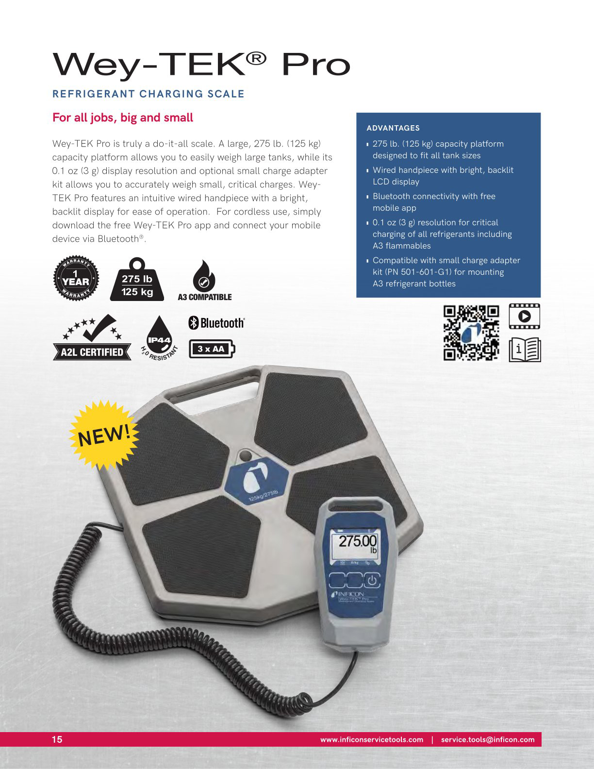 ■3 克分辨率(0.1 Oz),適用於所有冷媒(包括 A3 可燃性冷媒)