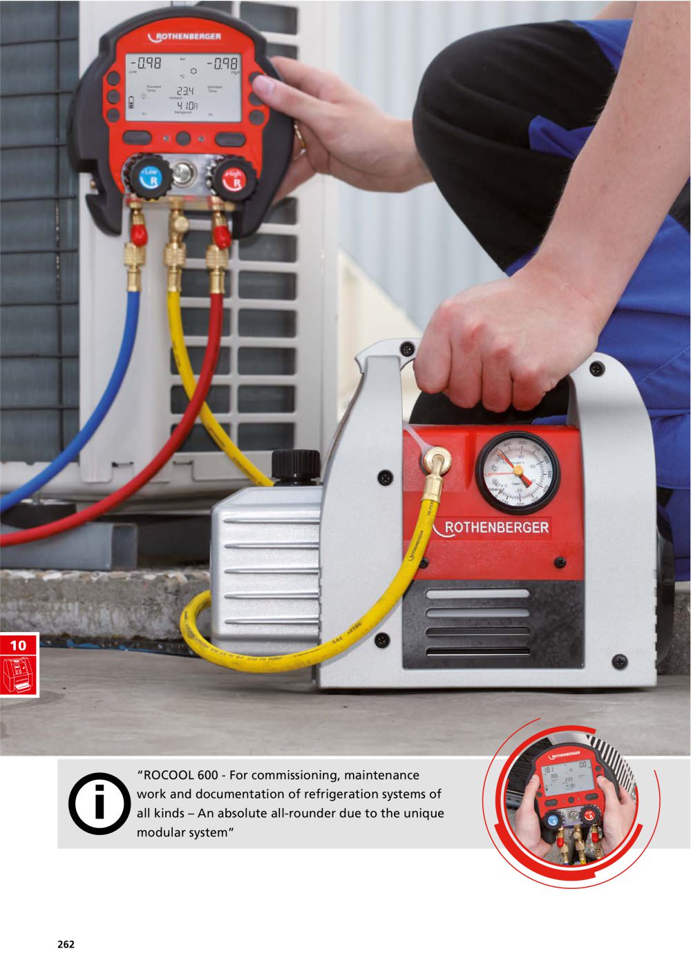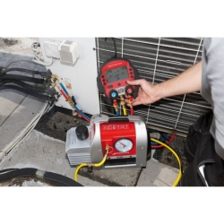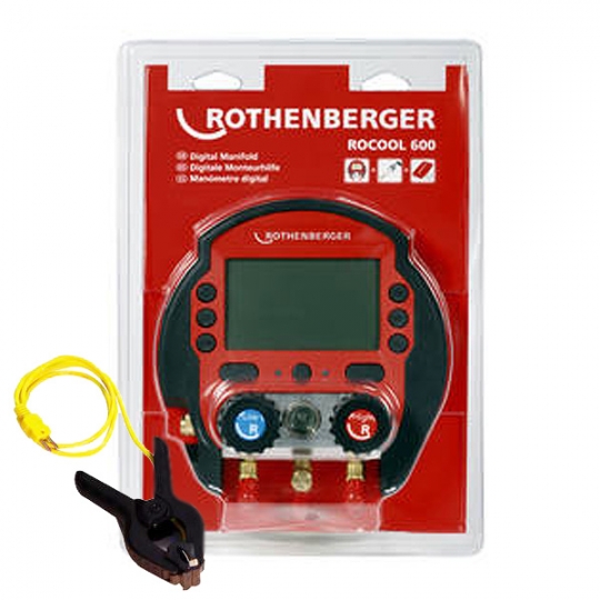德國原裝進口ROTHENBERGER數位電子表組 ROCOOL 600 壓力顯示模式: bar / psi / kpa / Mpa 温度顯示模式: ℃ & ℉ 電源:9V電池 / 550mAh LCD尺寸:4-1/3" / 11cm 壓力測量範圍:-1~60bar 精確度:±0.5% 連接方式:1/4"SAE 可支援70多種市售冷媒(包含R744) 可另選購RED BOX裝置,透過軟體可讀取或記錄系統數據。 以及可外接真空計獲得更精確的真空數據。