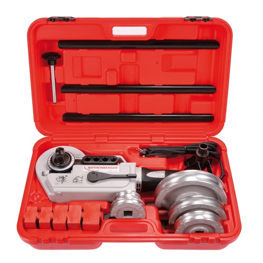 Rothenberger 電動彎管器組 德國品牌 支援1/2″, 5/8″, 3/4″, 7/8″,1", 1-1/8″, 1-3/8″ 彎曲半徑可達180度 適用於多種材質管路(軟/半硬/硬質銅管; 薄型不鏽鋼管) 馬達效能達900W/110VAC 附三角支架座,將彎管器架高(可另選配加高桿) 施工快速減少焊接問題 管徑加工美觀無皺折損壞 配件: 彎管器主機/彎模滑片7組/滑片桿/站立支架/手提箱 可另外加購彎模滑片組 公司貨保固一年