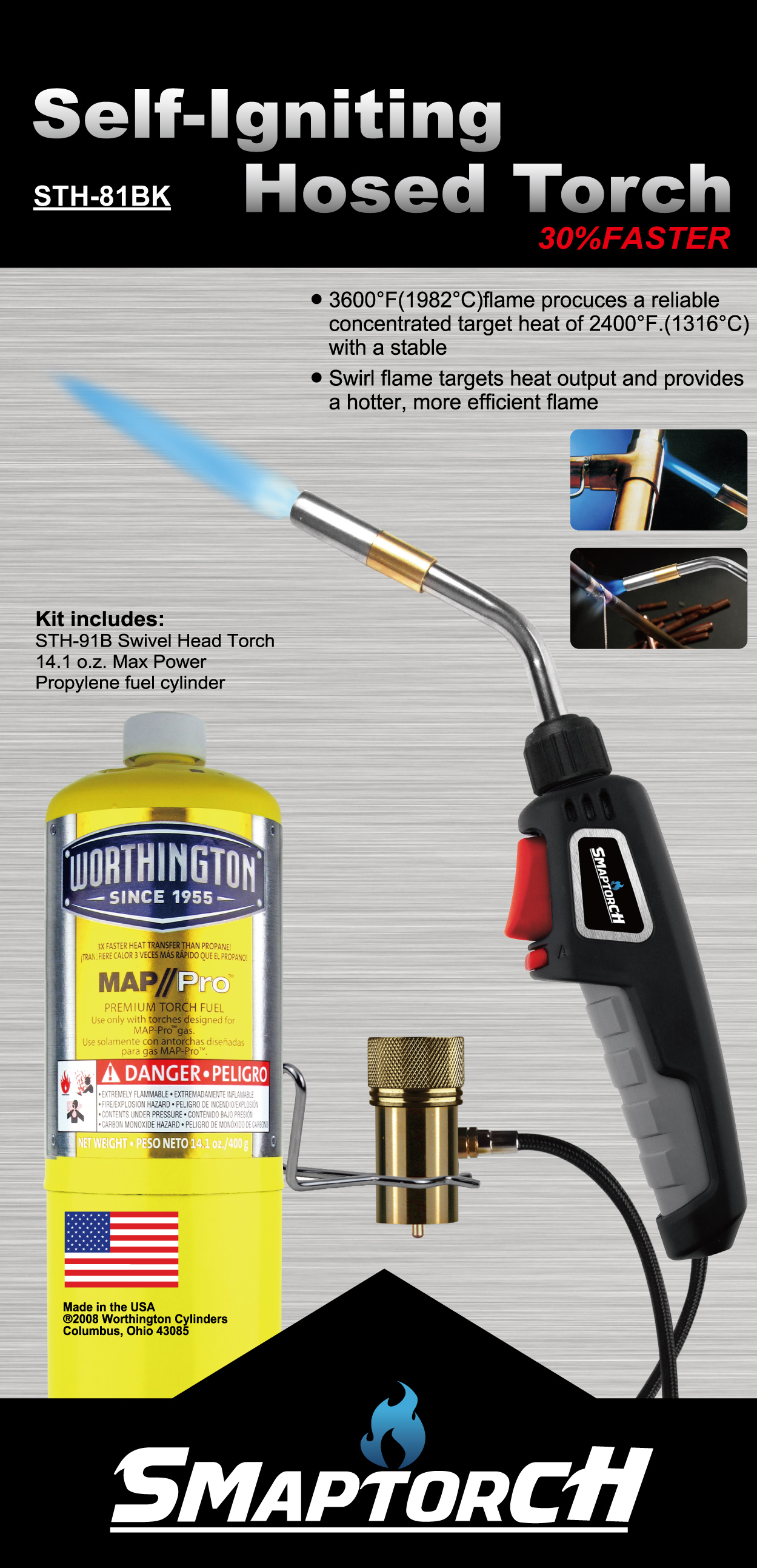 使用美國MAP//PRO黃色瓦斯燃點溫度可達1316℃。
